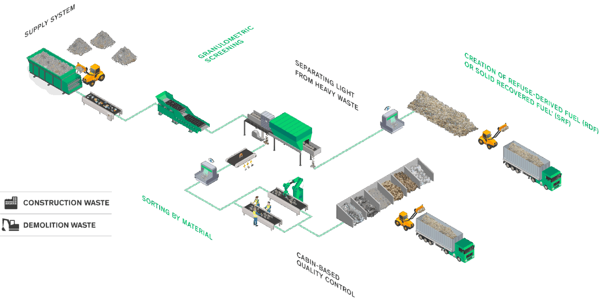Given the diversity and complexity of industrial and construction waste, Aktid designs robust, flexible, and tailored sorting facilities.