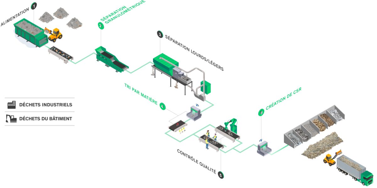 Son crible VIBRA-SNAP® à simple ou double étage est principalement utilisé pour séparer par effet trampoline des matières fines de (très) petite granulométrie (de 0,1 à 60 mm environ) complexes et hétérogènes telles que les déchets industriels, encombrants, déchets de chantiers, gravats, RBA, compost, bois, CSR…